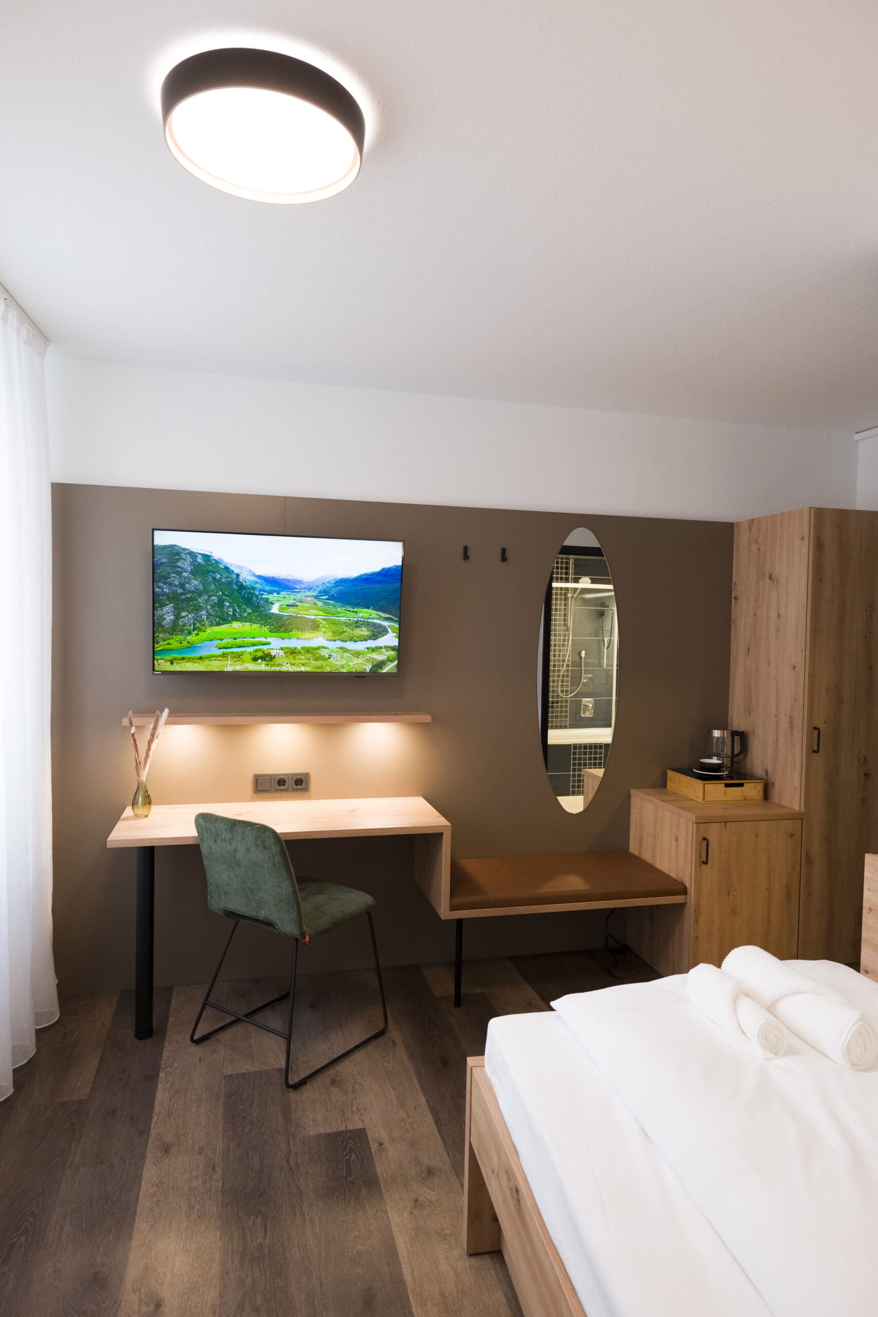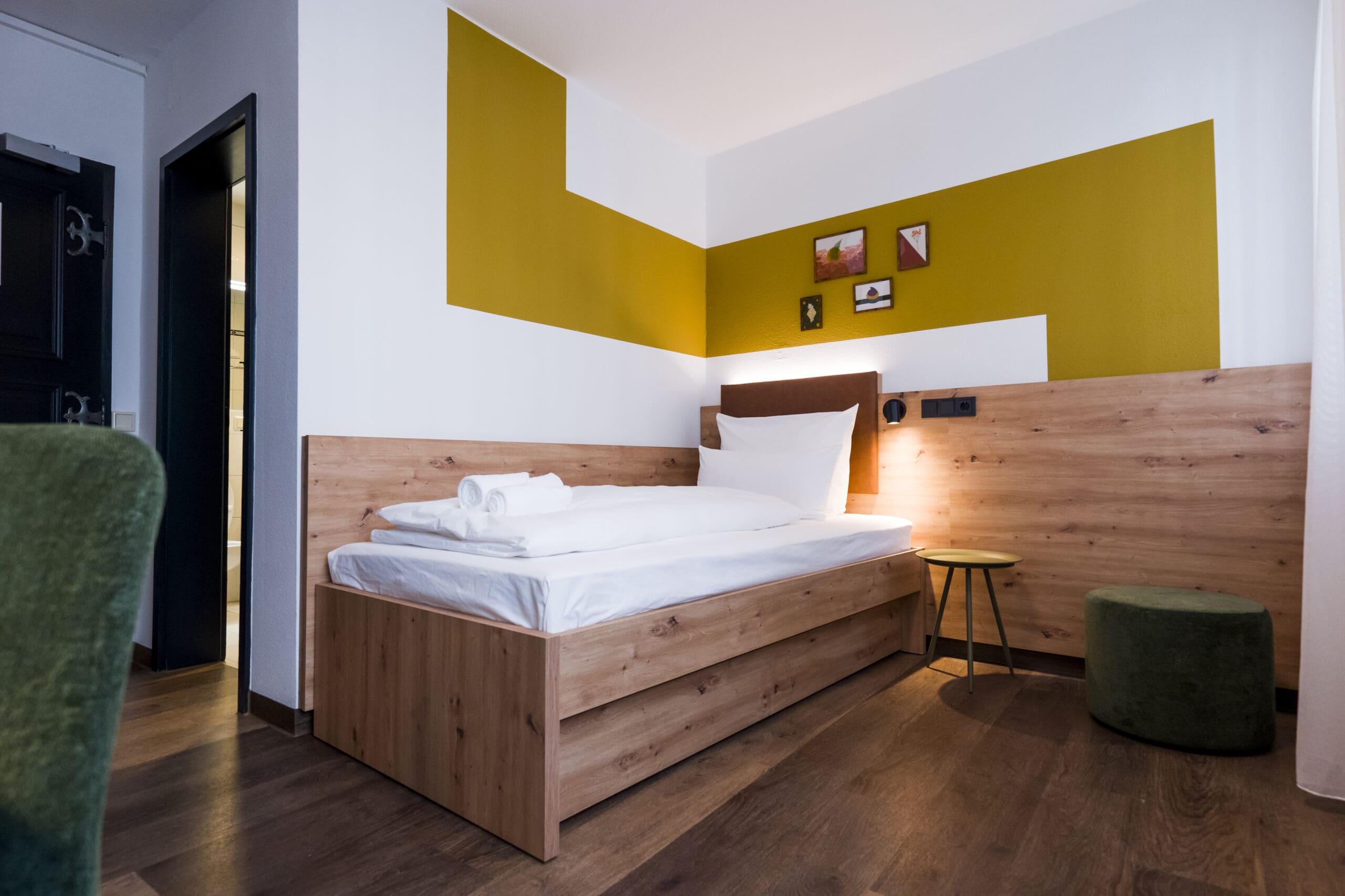 Mitten in der Stadt und doch angenehm privat: Ein Ort für Individualisten, die das Besondere im Einfachen schätzen. Dezente Farben, klare Formen und ein modernes Bad mit Badewanne schaffen eine Atmosphäre der Ruhe abseits des Stadttrubels. Perfekt für Gäste, die sich nach einem langen Tag eine kleine Auszeit gönnen möchten.